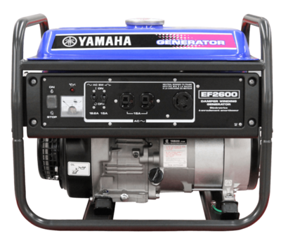 Rugged yet lightweight, the EF2600 features a "Damper Winding" alternator which produces a cleaner sine wave than most conventional generators. The EF2600 offers excellent value and Yamaha's unquestioned reliability. Weighing in at only 43 kg (93 lb) the EF2600 offers clean, quiet power for under $1,000.